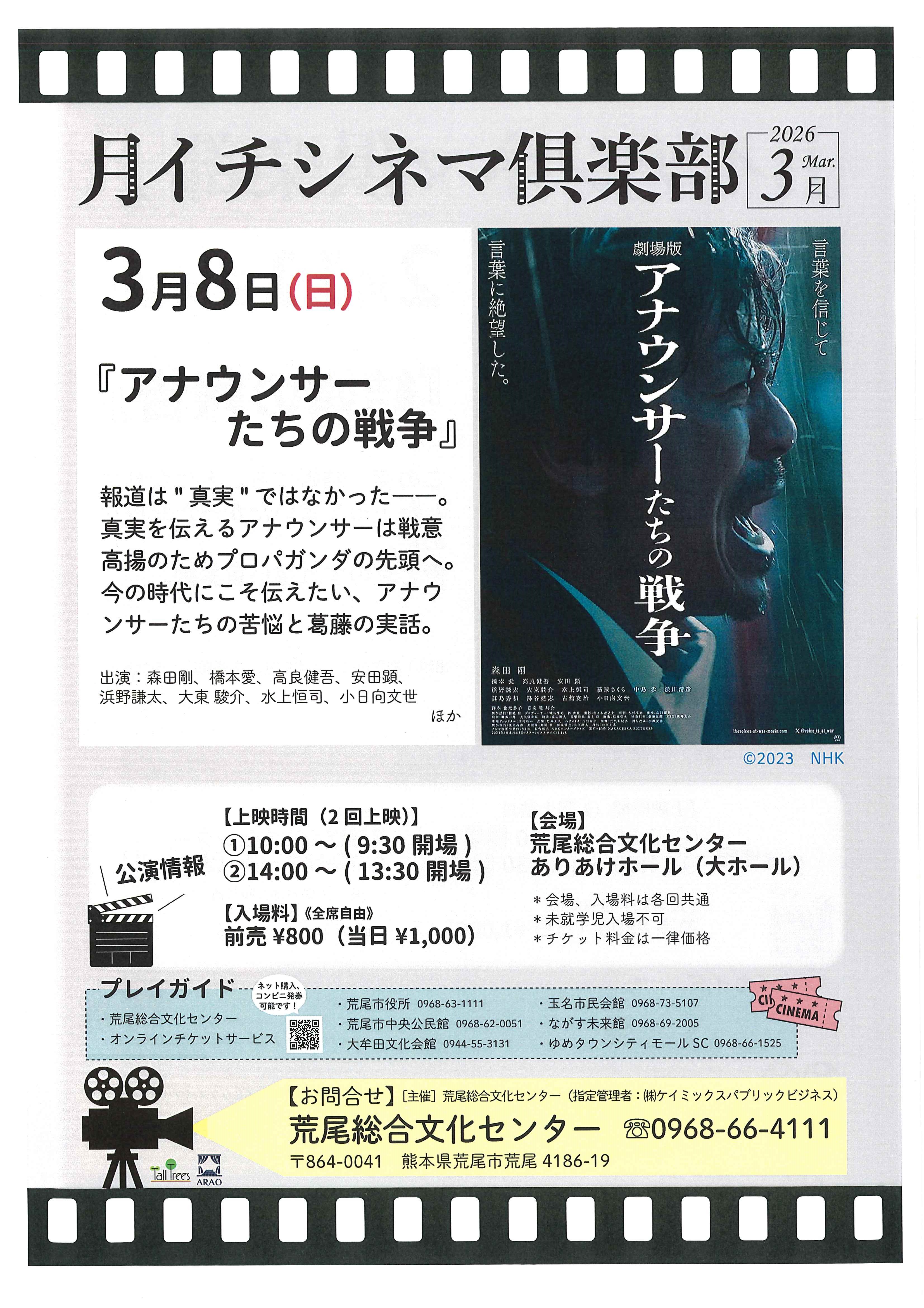 ・3月8日(日) アナウンサーたちの戦争(荒尾総合文化センター)