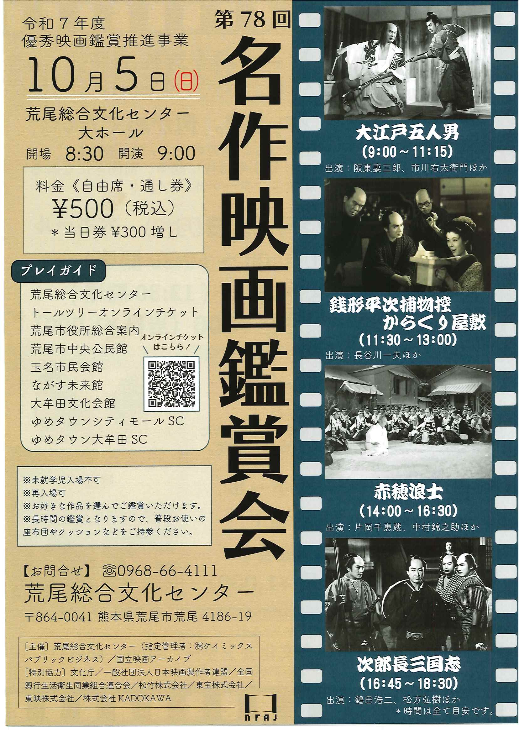 ・10月5日(日) 第78回名作映画鑑賞会(荒尾総合文化センター)