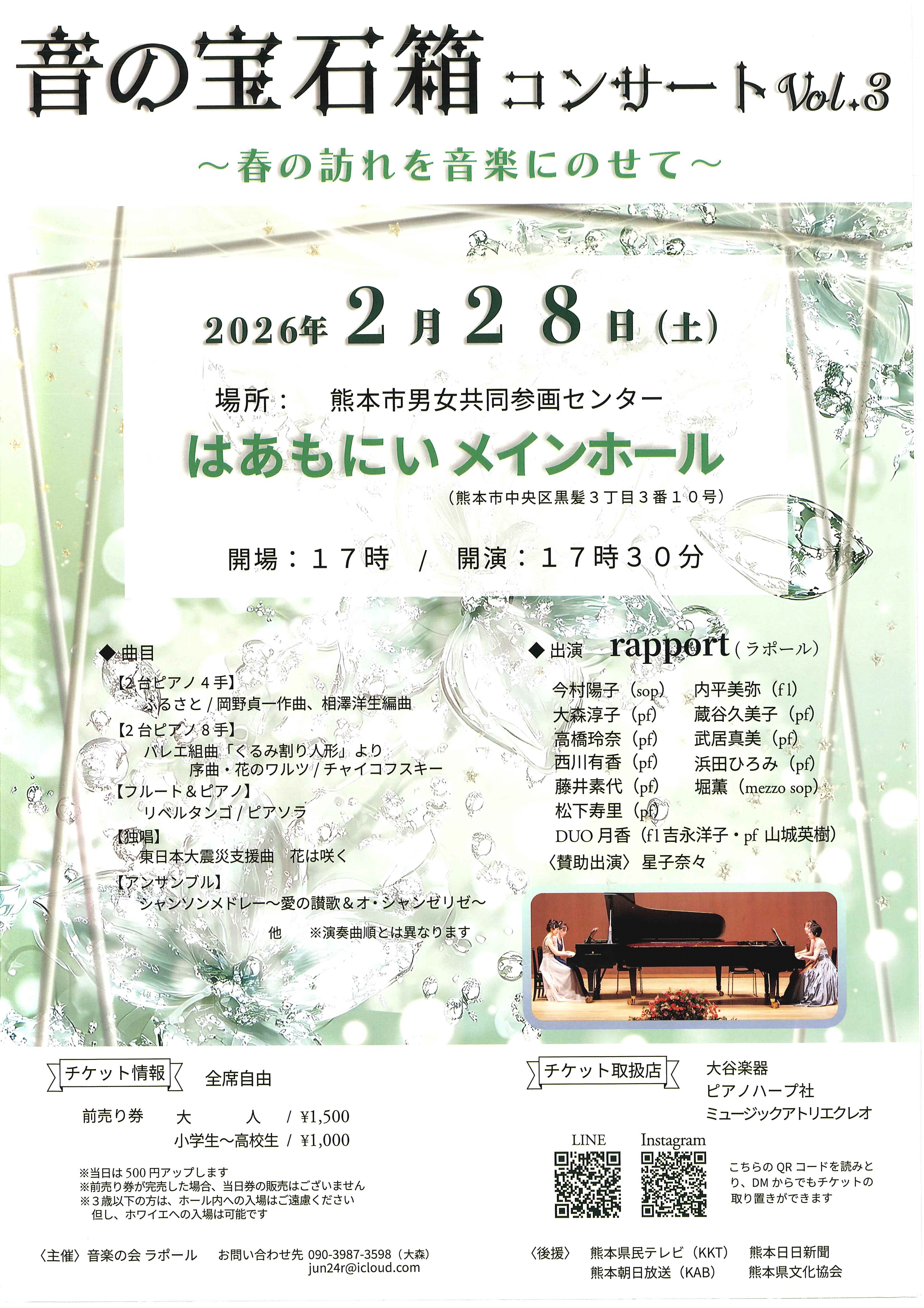 ・2月28日(土) 音の宝石箱コンサートVol.3(はあもにいホール)