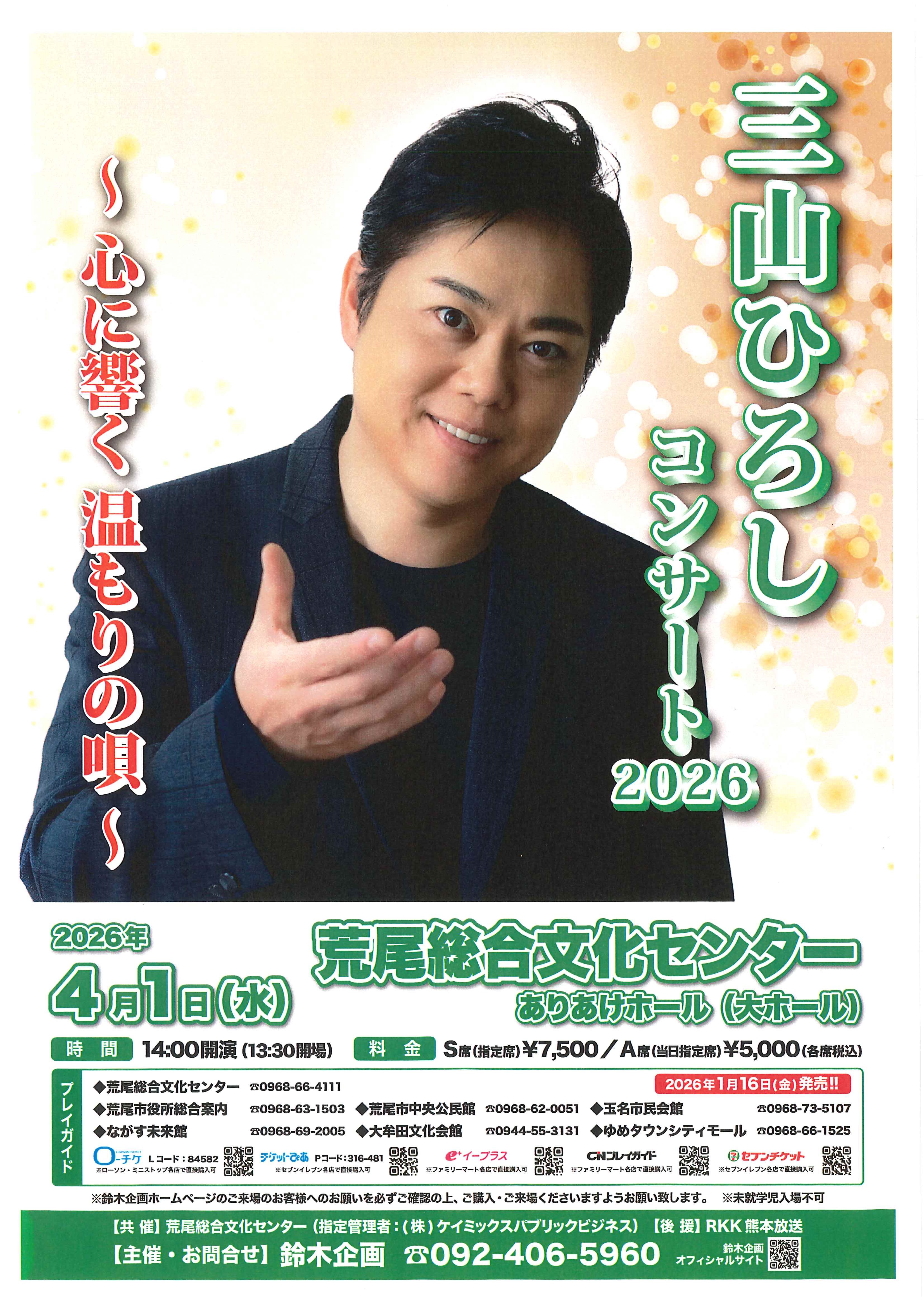 ・4月1日(水) 三山ひろしコンサート2026(荒尾総合文化センター)