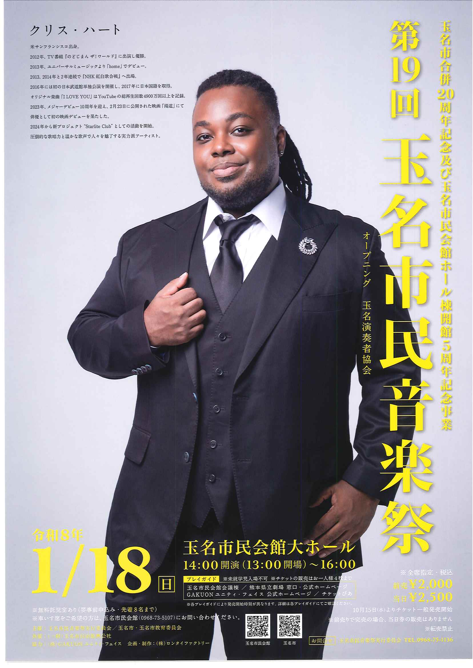 ・1月18 日(日) 玉名市合併20周年記念及び玉名市民会館ホール棟開館5周年記念事業 第19回玉名市民音楽祭(玉名市民会館大ホール)