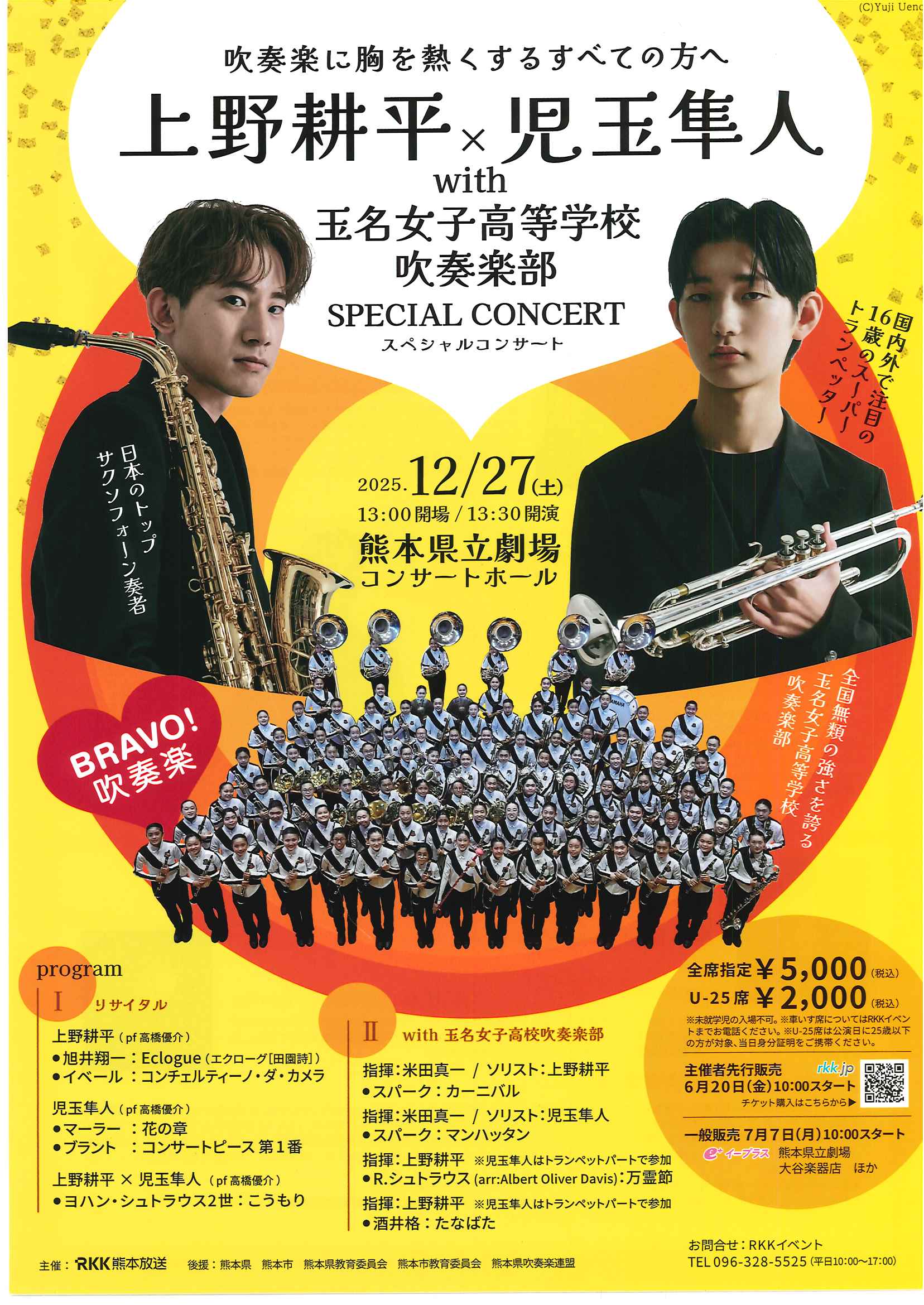 ・12月27日(土) 上野耕平×児玉隼人with玉名女子高等学校吹奏楽部 SPECIAL CONCERT(熊本県立劇場コンサートホール)